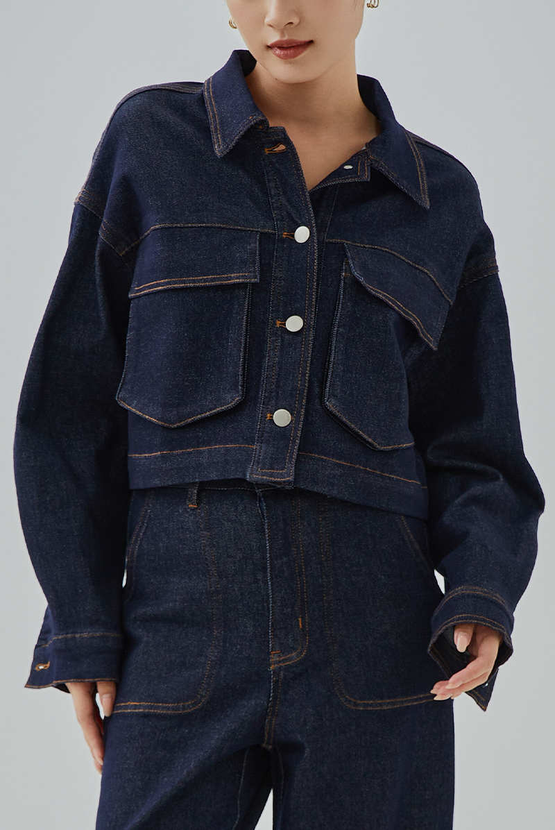 This classic denim jacket with a sharp collar is a wardrobe staple! It features metal buttons down the front for that cool, rugged vibe, and functional front flap pockets that add both style and practicality. Pair it with our matching Alberte Straight Leg Denim Pants for an effortlessly coordinated look that’s timeless and always in style. Perfect for a laid-back, street-smart aesthetic!