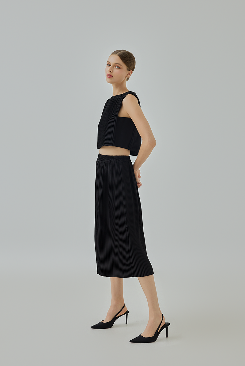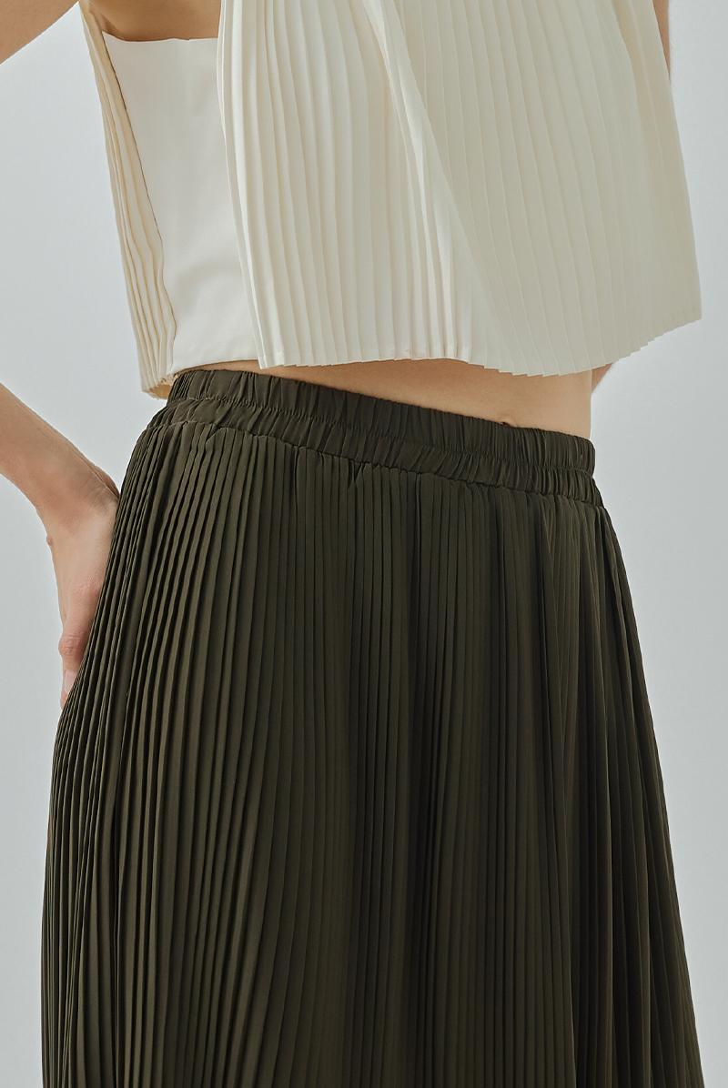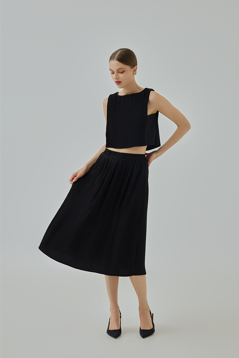 A skirt that's pure effortless charm: an A-line beauty with the same crisp, narrow pleats as our Alexandra Pleated Top, creating a flowing, sculptural silhouette. The elasticated waist cinches gently, offering comfort without sacrificing style, while the pleats catch the light with every step. It's a graceful, easygoing piece that sways between casual cool and quiet luxury.