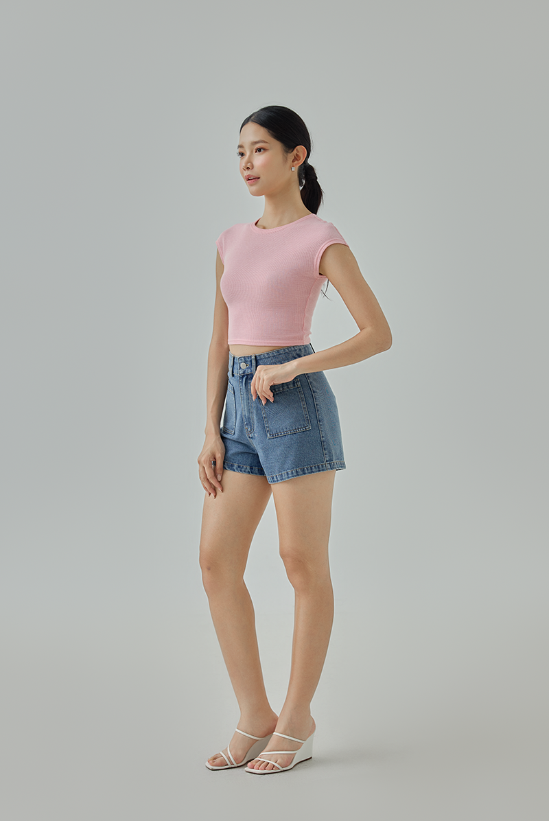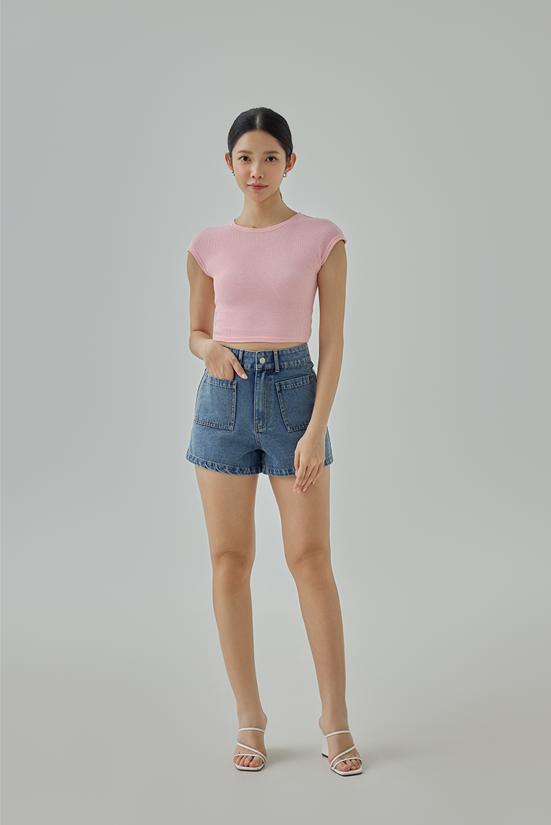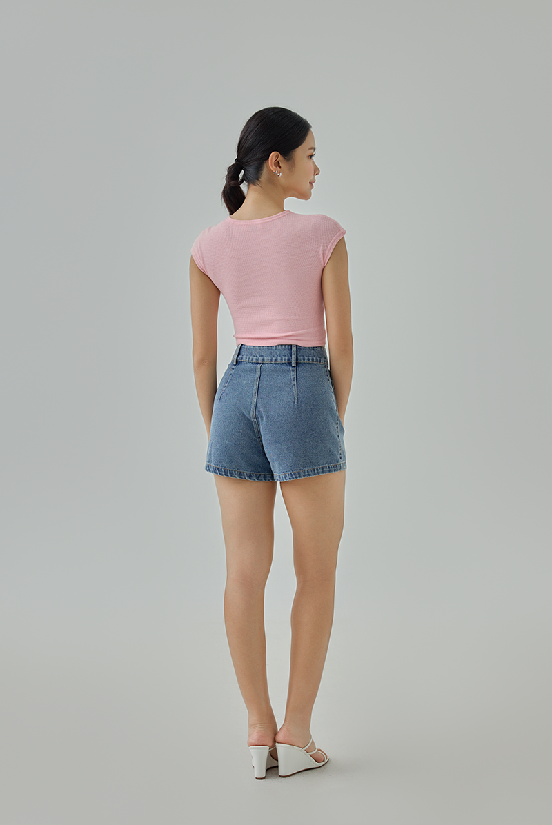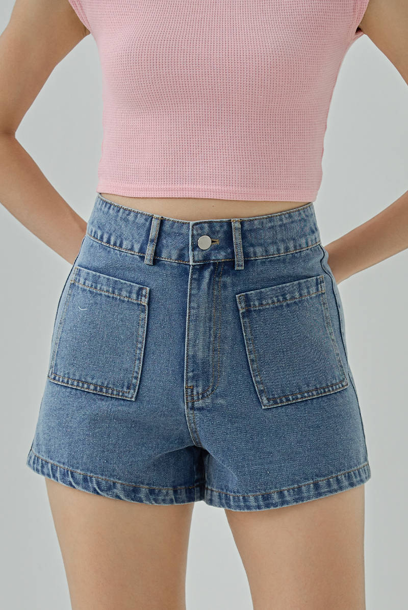 Your everyday denim essential, designed to flatter and feel good. These high-waisted denim shorts feature a structured fit with a thick waistband that cinches comfortably at the waist, making them easy to dress up or down.