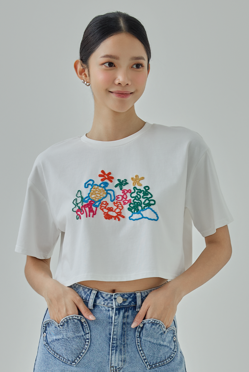A breezy, art-inspired crop top that combines comfort and creativity, perfect for adding a playful yet stylish touch to any outfit.