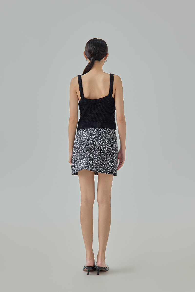 Bring fresh, feminine vibes to your wardrobe with this playful floral mini skirt. The high waist and unique extended panel add a stylish twist to a classic silhouette.