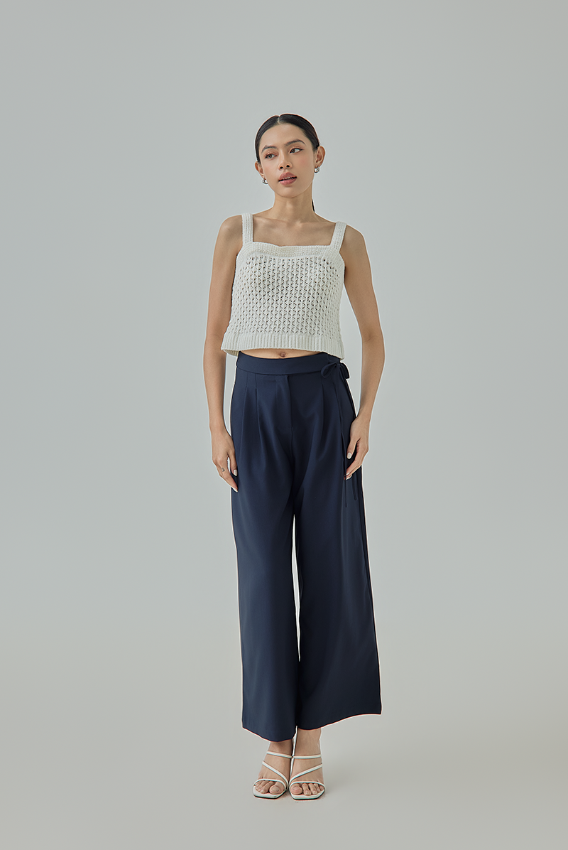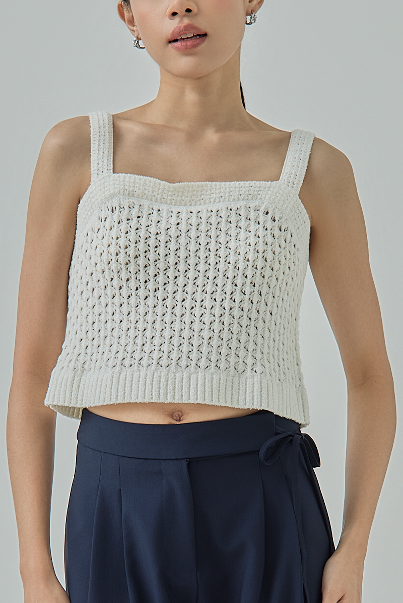 Effortlessly breezy and stylish, this sleeveless knitted top is your go-to for easy, everyday chic. Its relaxed fit keeps you comfy without compromising on style.