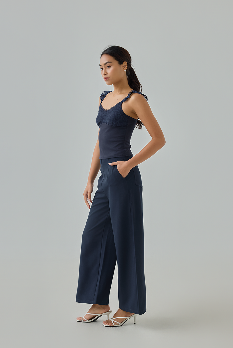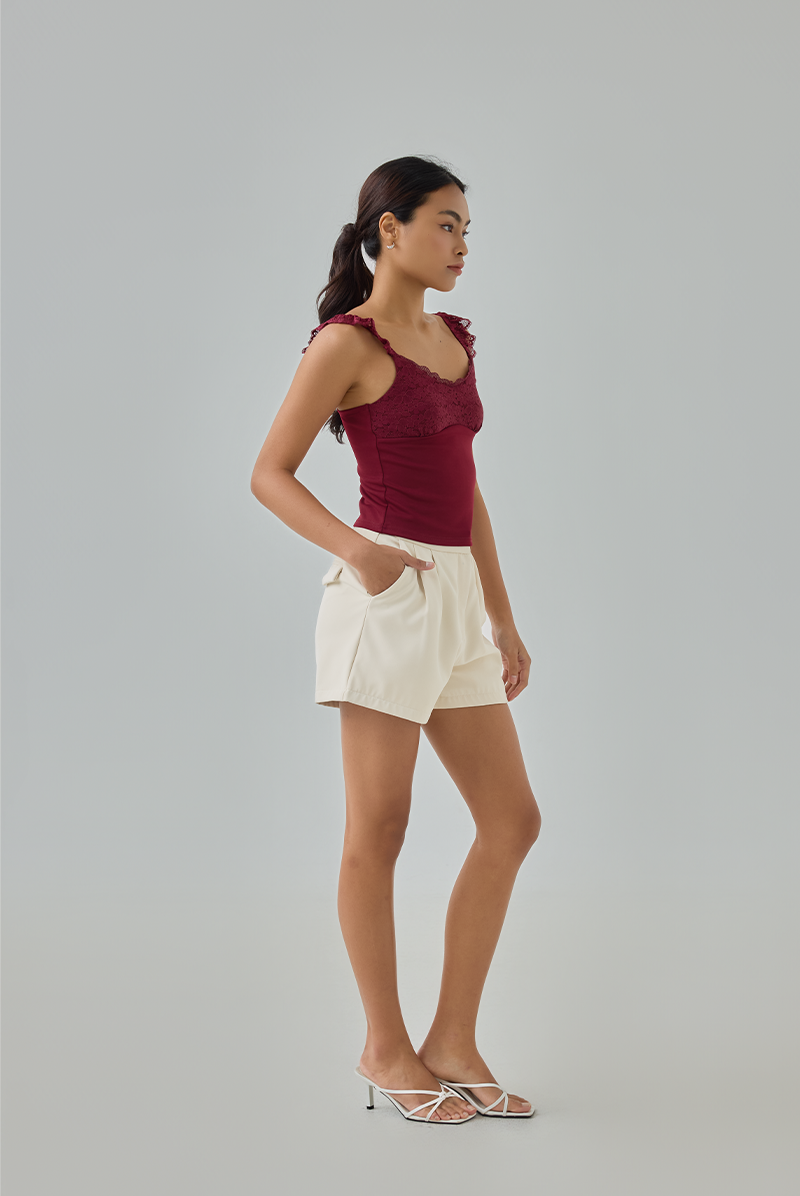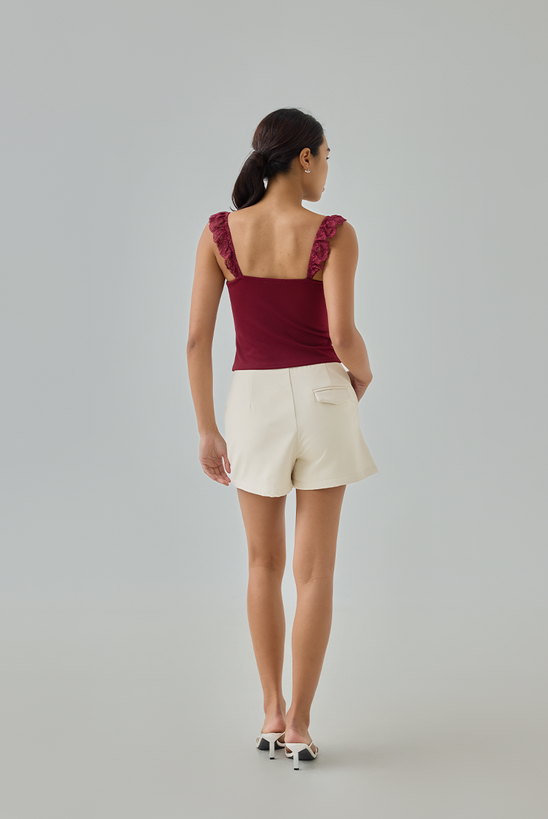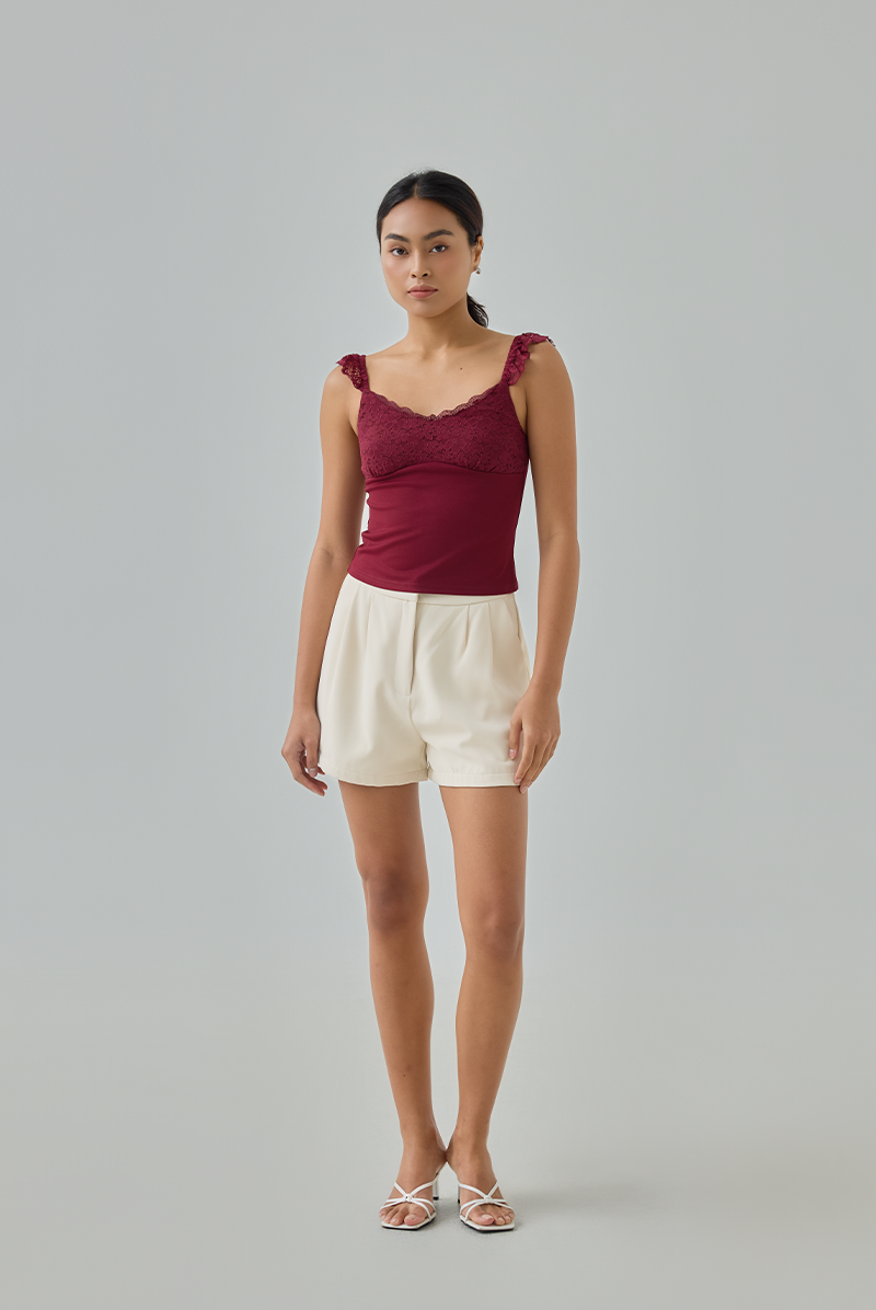 Feminine and flattering, this padded top combines delicate lace detailing with a sleek, stretchable bodice for a fitted silhouette you’ll love.