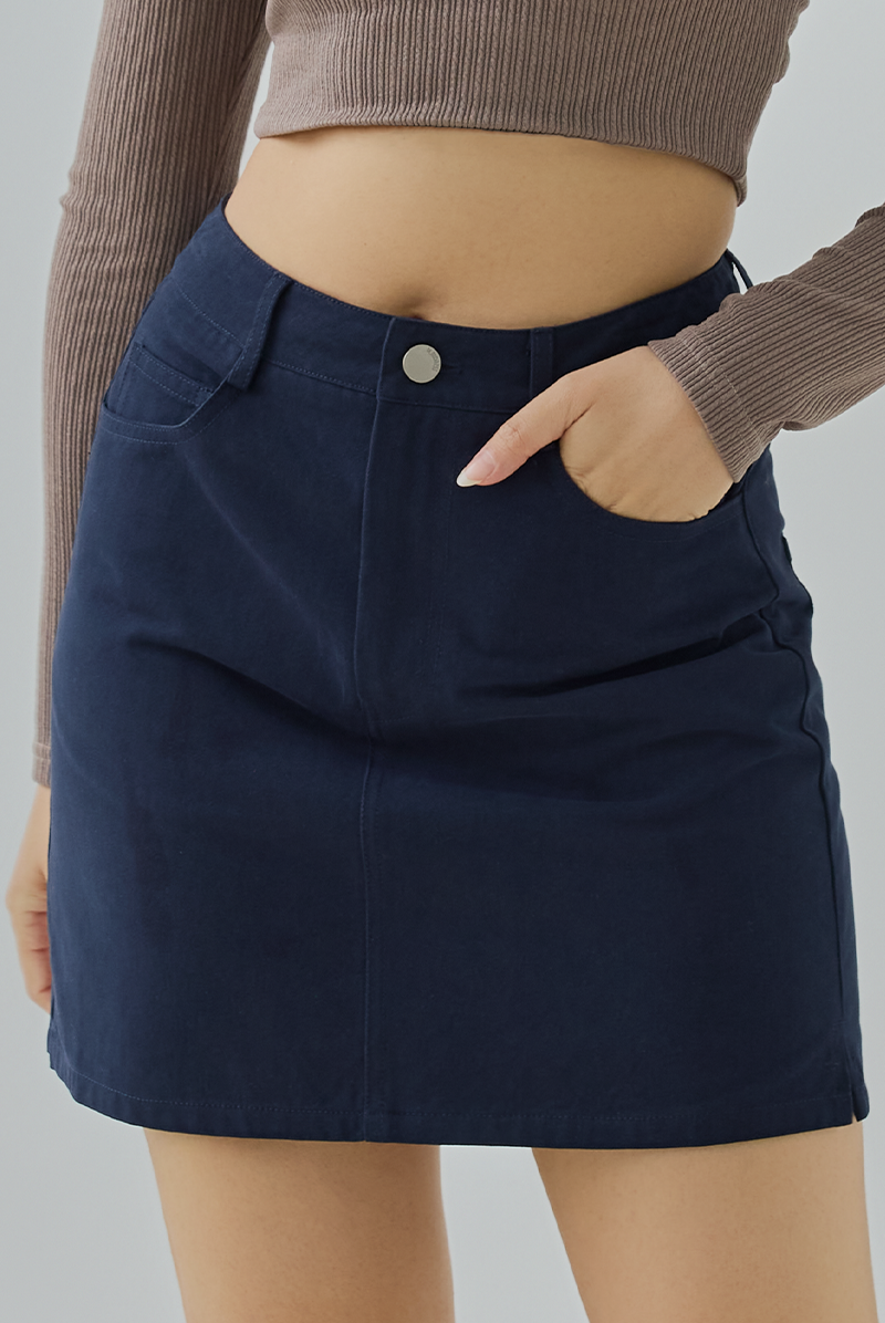 Crisp, clean, and endlessly versatile — the Elody Mini Skirt is your go-to for a fresh, minimal look. Crafted from a structured woven fabric, it hugs just right with a flattering high-rise cut and sleek A-line shape. Functional pockets and a tiny side slit add just the right amount of attitude to this easy essential.