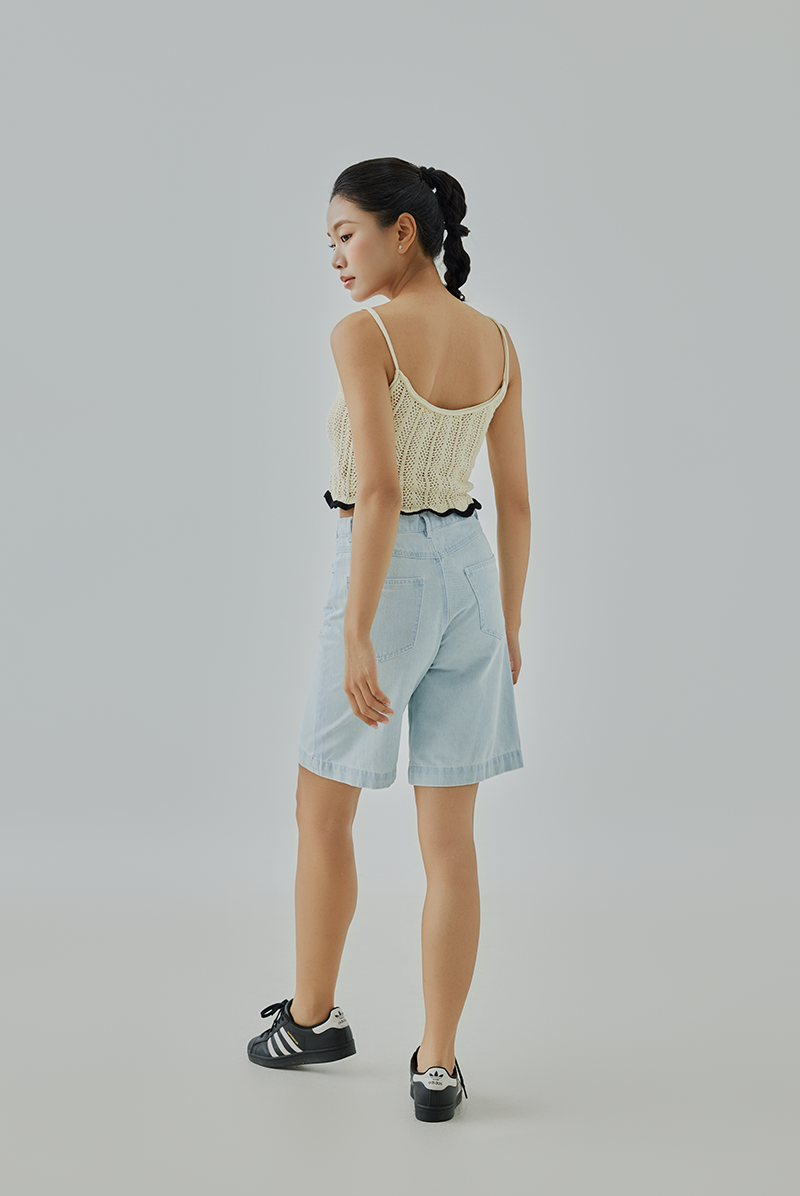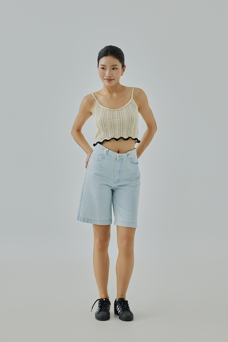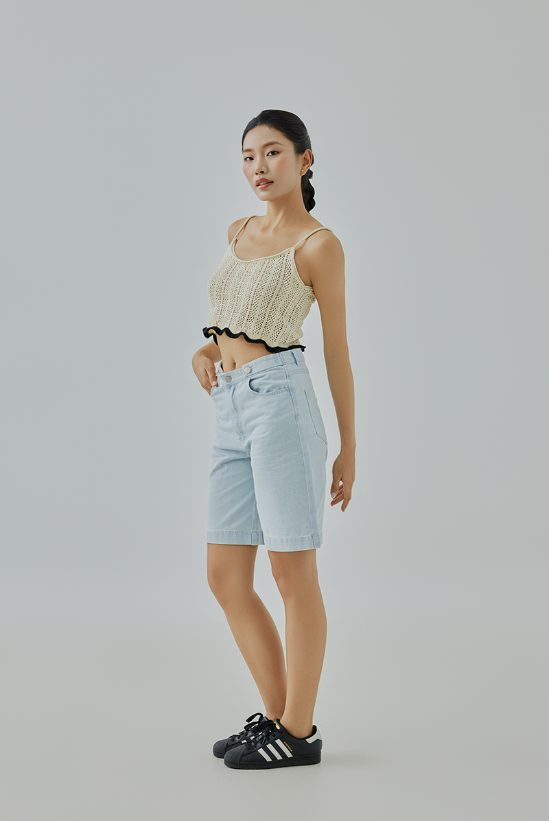 A fresh twist on a classic — these denim jorts bring vintage vibes with a modern edge. Designed with a flattering high waist and unique button details on both sides, they’re finished with all the essentials: five functional pockets for all your grab-and-go moments. Casual, cool, and made for sunny days.