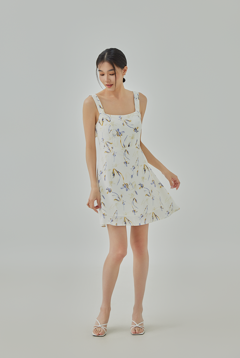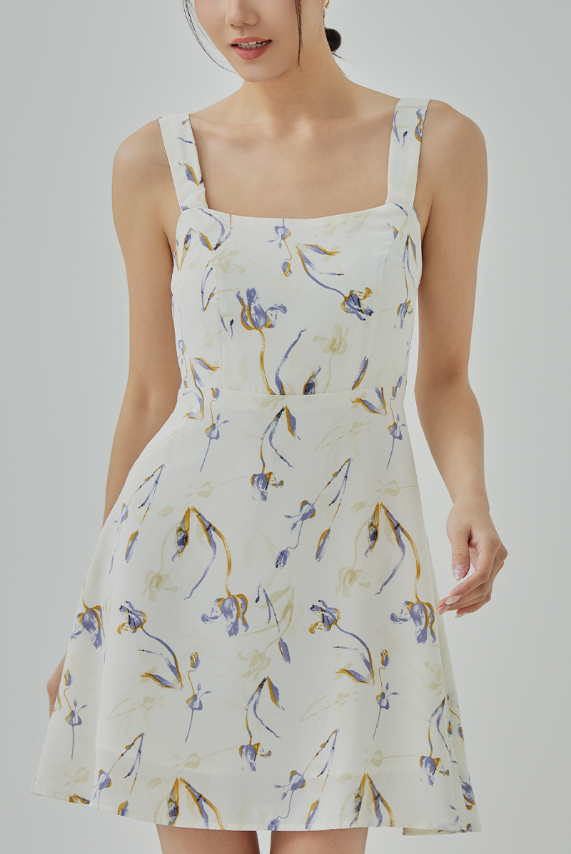 A charming A-line mini dress with a romantic floral print, featuring a flattering square neckline. The padded bust offers subtle support, while the back concealed zipper ensures a sleek finish. Perfect for breezy days and flirty nights!