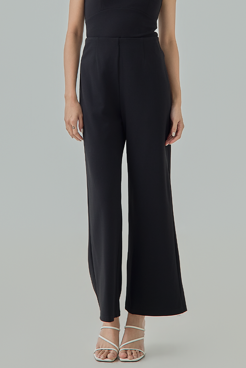 A refined pair of tailored trousers designed with a clean, structured silhouette for a polished everyday look. The straight-leg cut creates an elongated shape, while the minimalist design keeps the outfit sleek and versatile for both work and casual styling.