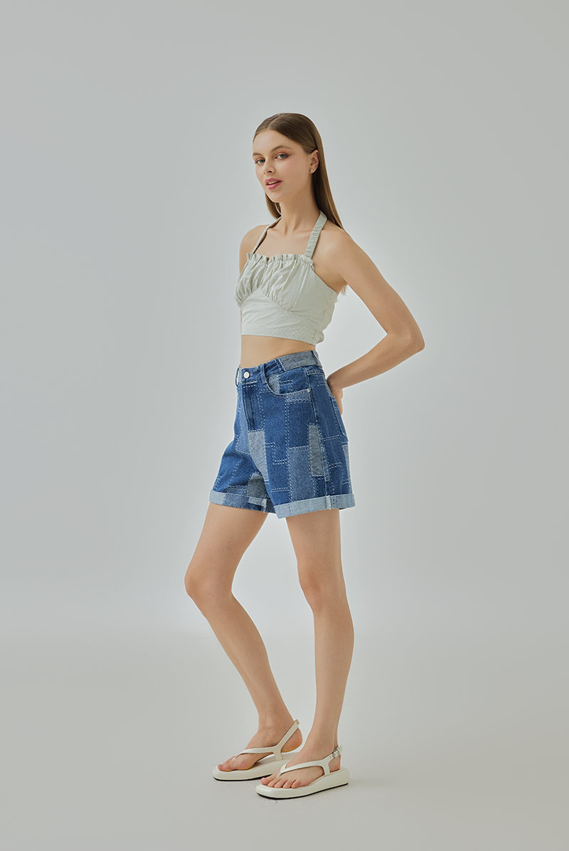 Easy, breezy, and a little flirty – this halter crop top in soft gingham is here to keep your outfits fun and fresh. With its ruched detailing and comfy fit, it’s the piece you’ll keep reaching for when you want effortless style.
