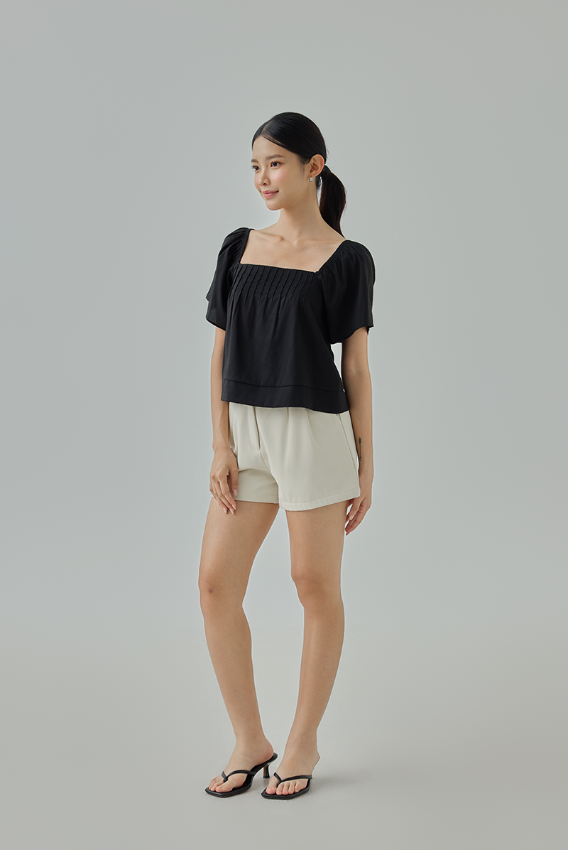 Styling Tip: Pair it with high-waisted straight jeans or tailored shorts to balance the volume, and finish with delicate gold jewellery or a small shoulder bag for an effortlessly chic outfit.