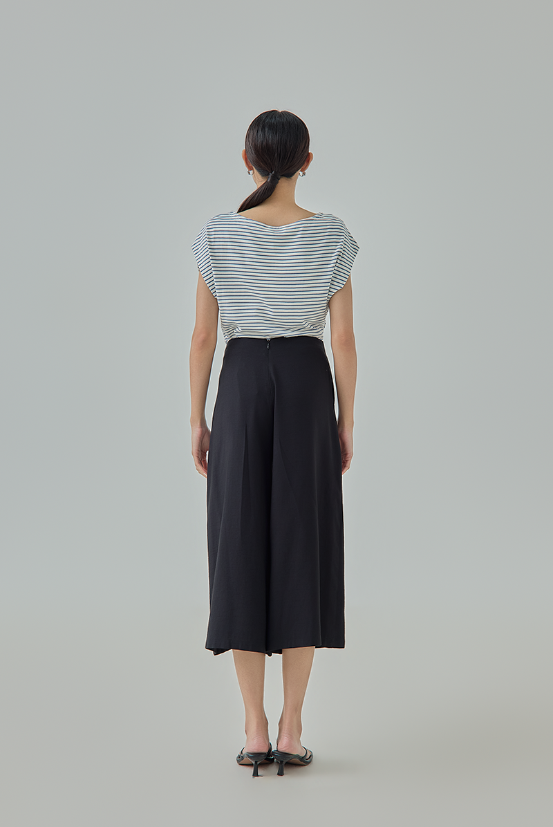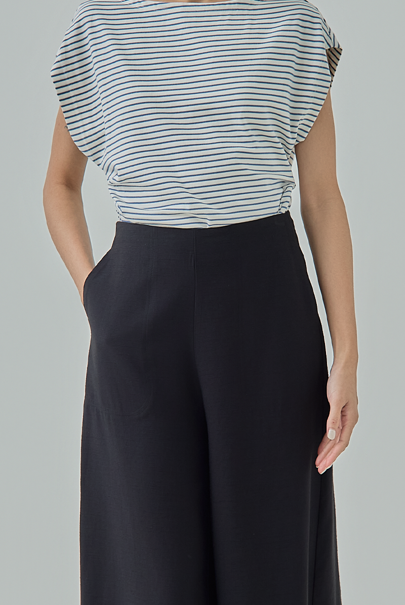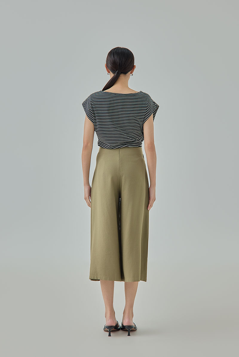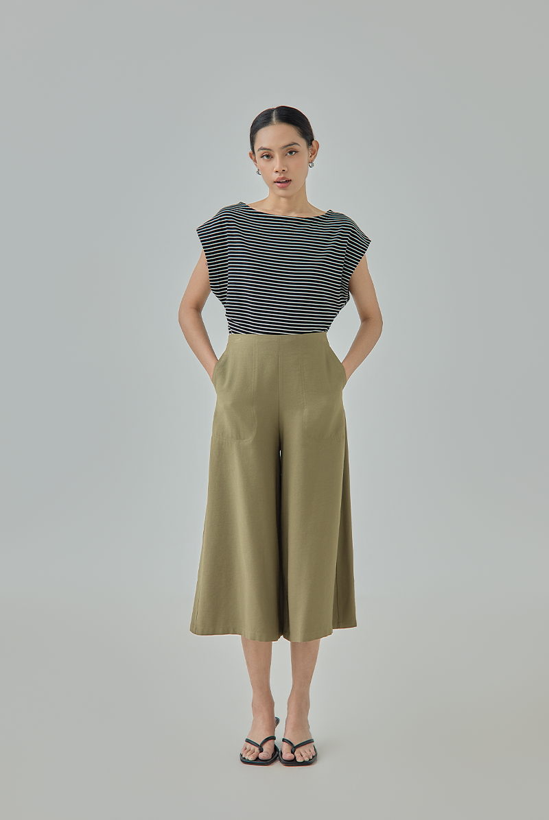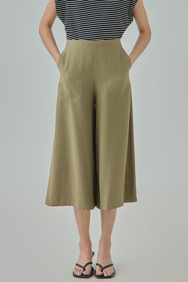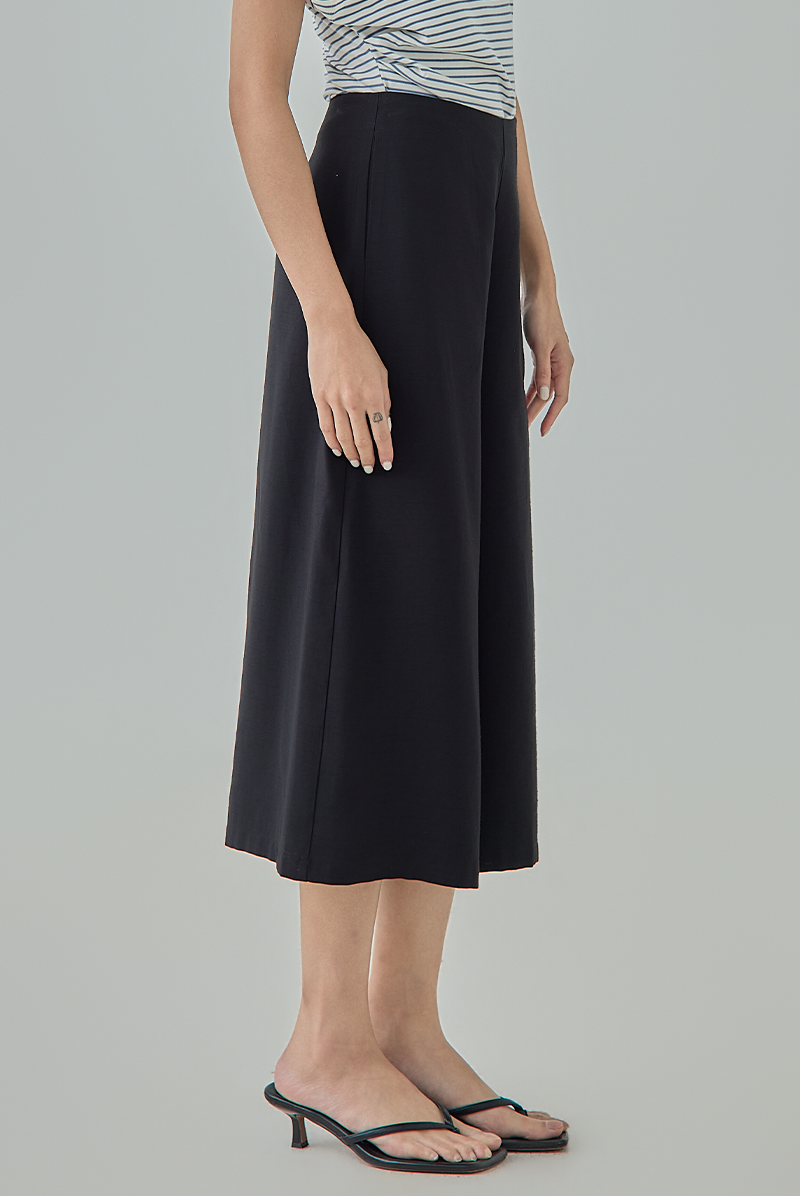 A modern essential designed with a relaxed wide-leg silhouette for effortless movement and comfort. The clean high-waisted cut creates a flattering shape, while the cropped culotte length gives the pants a contemporary and versatile appeal for both casual and smart styling.