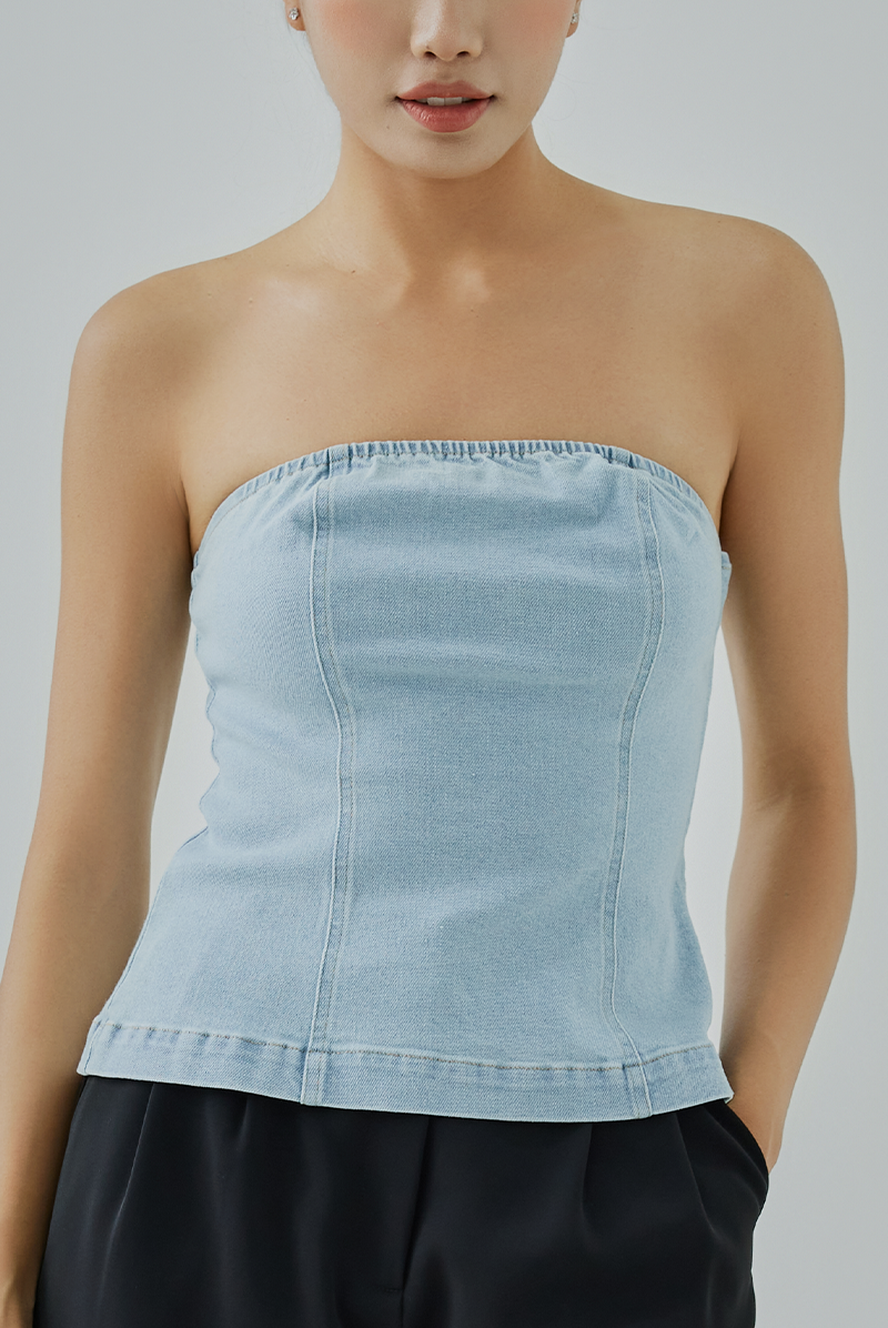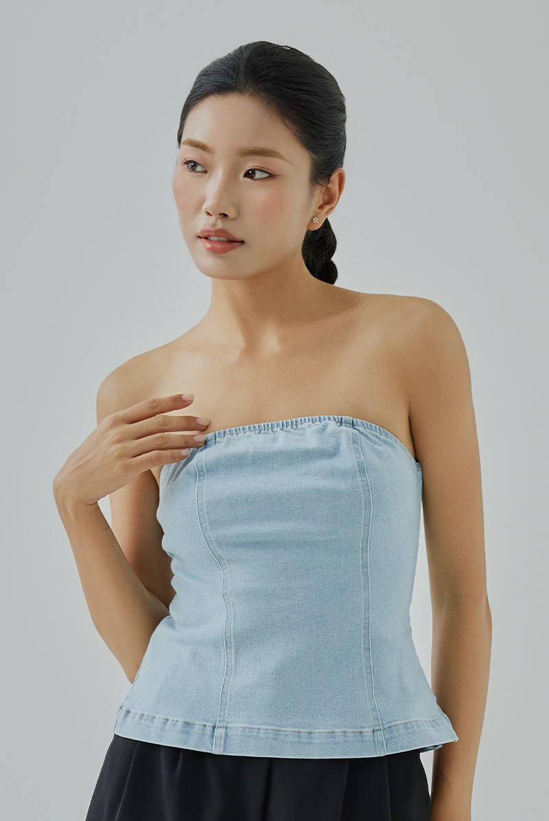 This denim tube top features a flirty, elasticated neckline for a snug yet comfy fit, while a sleek side metal zipper adds just the right amount of edge. Perfect for everything from rooftop parties to laid-back brunches — just zip up and slay!