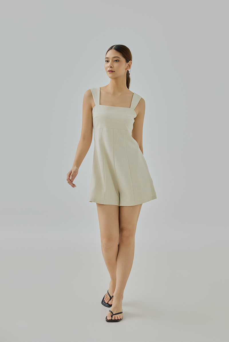 A chic, effortless romper designed for style and ease. With a structured square neckline and practical details, it’s perfect for day-to-night wear.