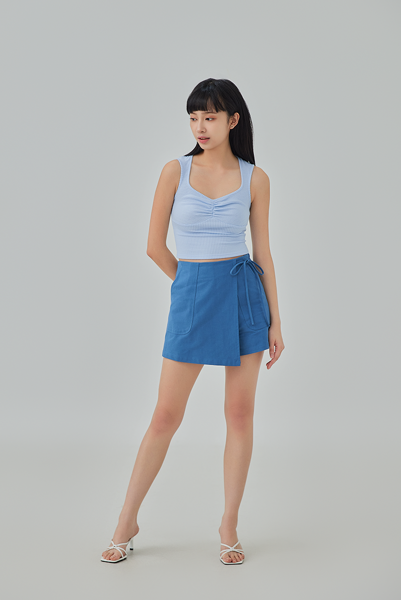 This skort is the perfect blend of playful and practical! With a front wrap layer secured by a cute self-tie ribbon. Functional patch pockets to keep your essentials close, while a hidden side zipper ensures a smooth, sleek fit. It's a stylish twist on your classic skort, designed to keep you both cute and comfy!