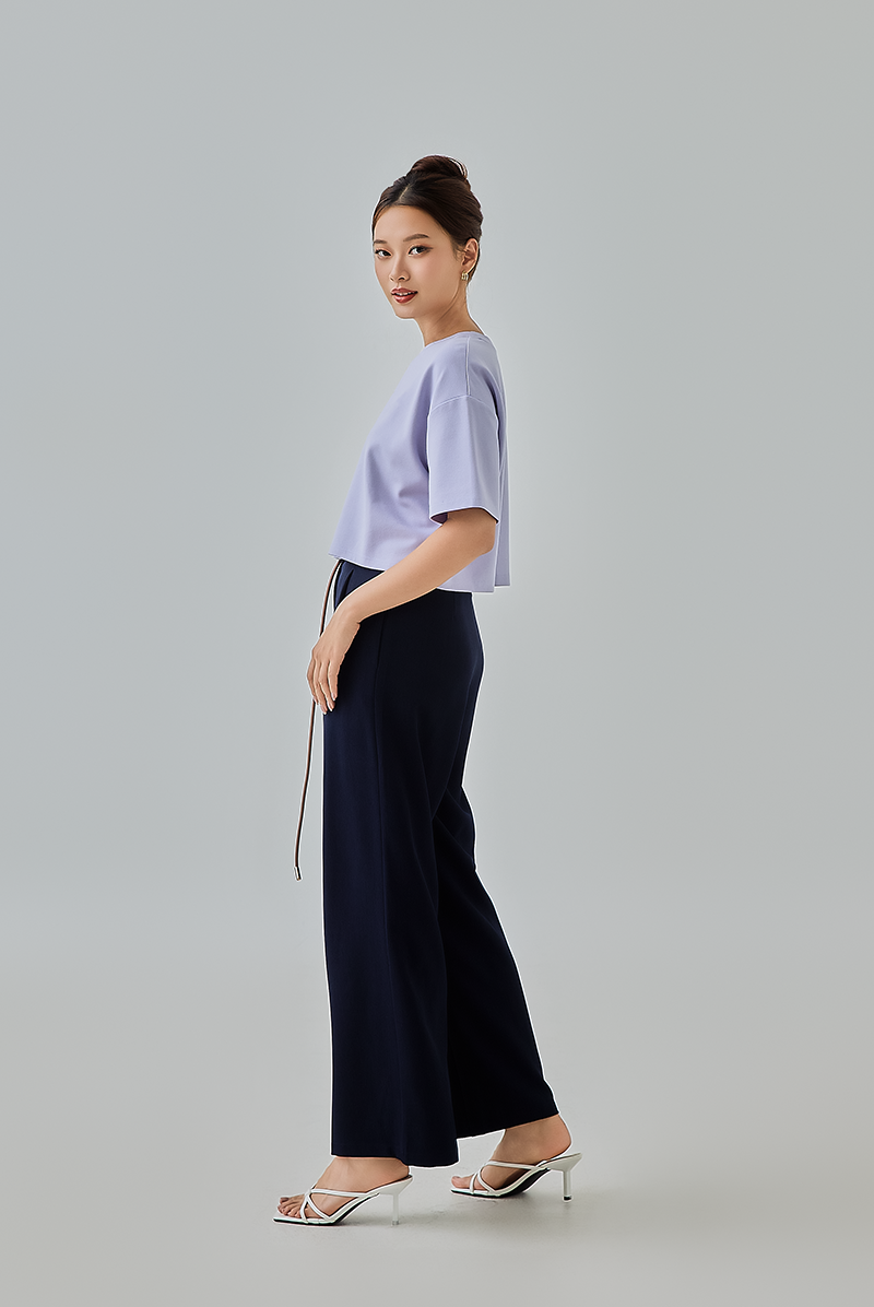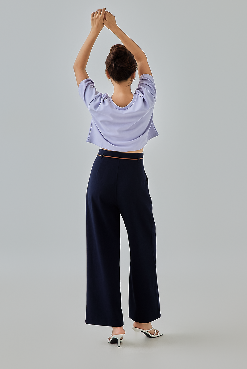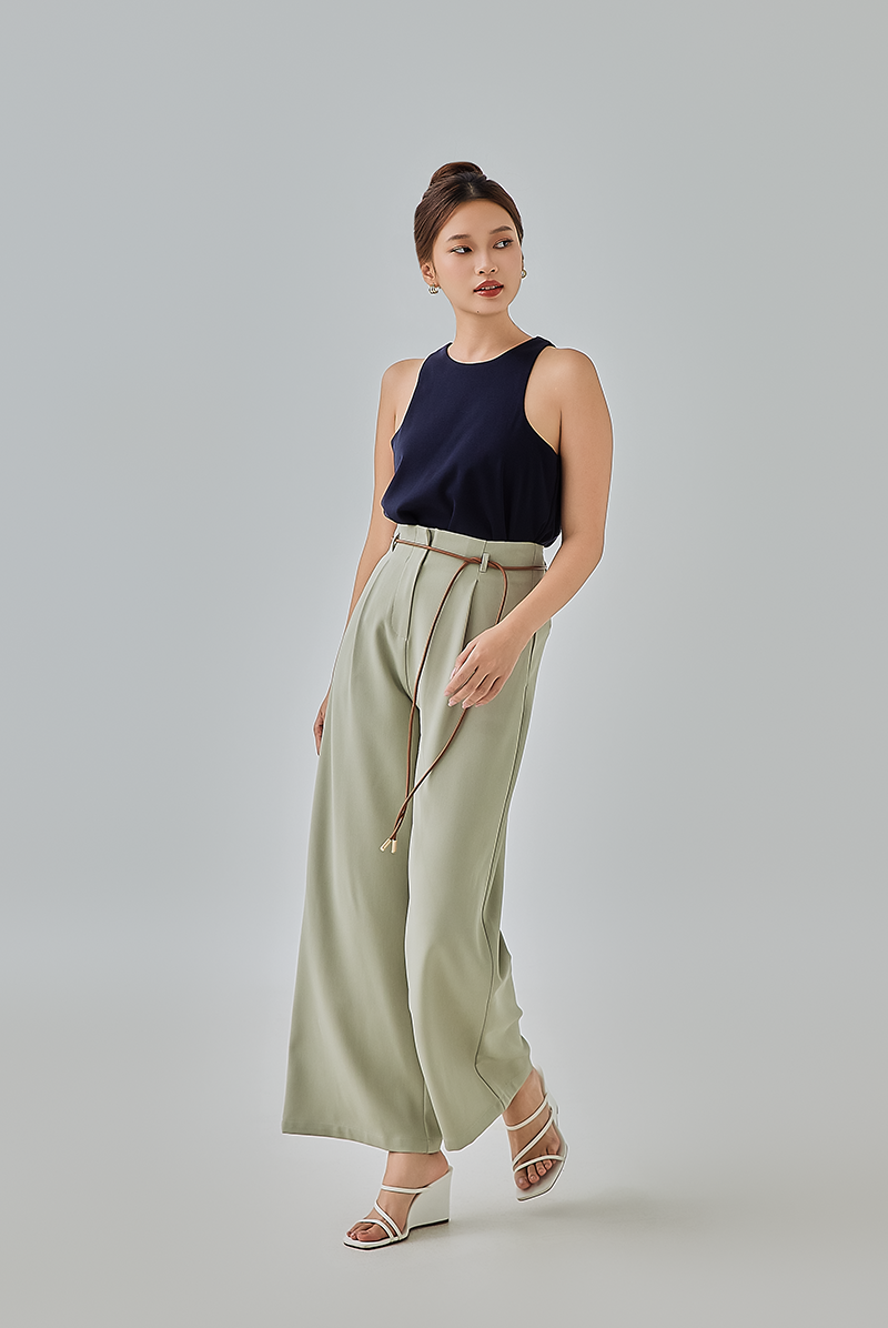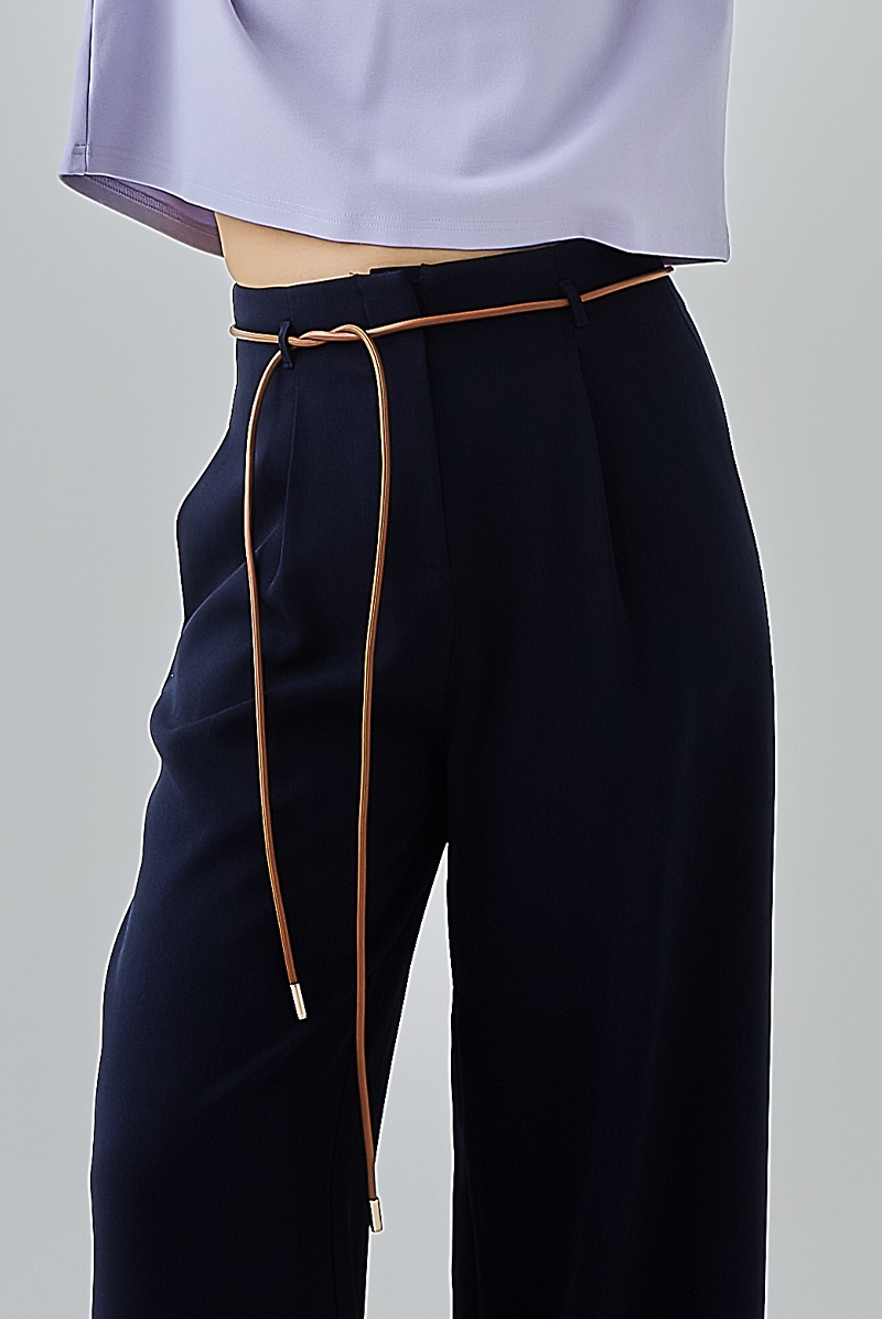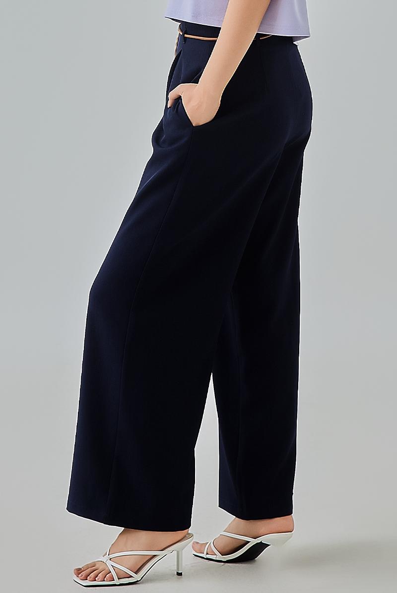 Elevate your style with these chic high-waisted wide-leg pants featuring a sleek, waistband-free design. Crafted for comfort, they boast functional belt loops and come with a detachable thin leather belt for added flair. Enjoy the practicality of side pockets and a hidden hook and clasp paired with a discreet zipper closure, making them perfect for day-to-night wear.