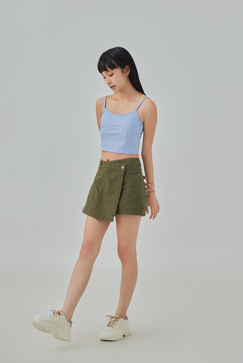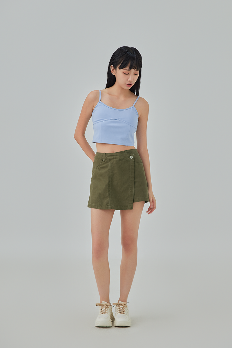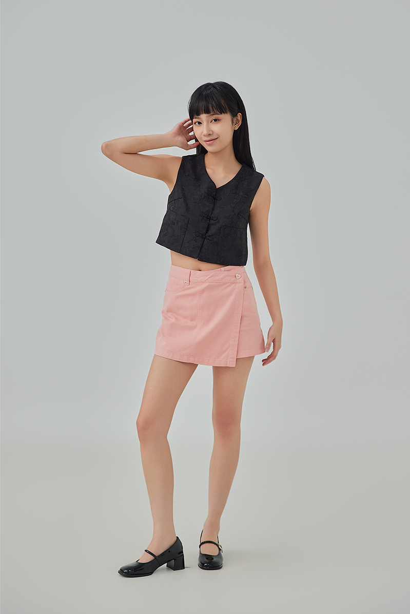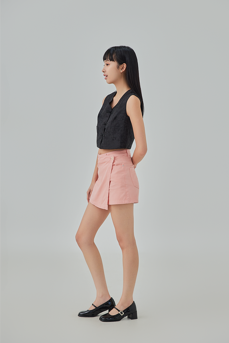 This beauty features a playful wrap layer secured with a heart-shaped button that’s giving cute romantic yet practical vibes. Functional front and back pockets mean your essentials are always close, while belt loops let you accessorize to your heart’s content. The hidden button and zip behind the wrap gives the overall look a smooth finish. Perfect for everything from brunch dates to spontaneous adventures!