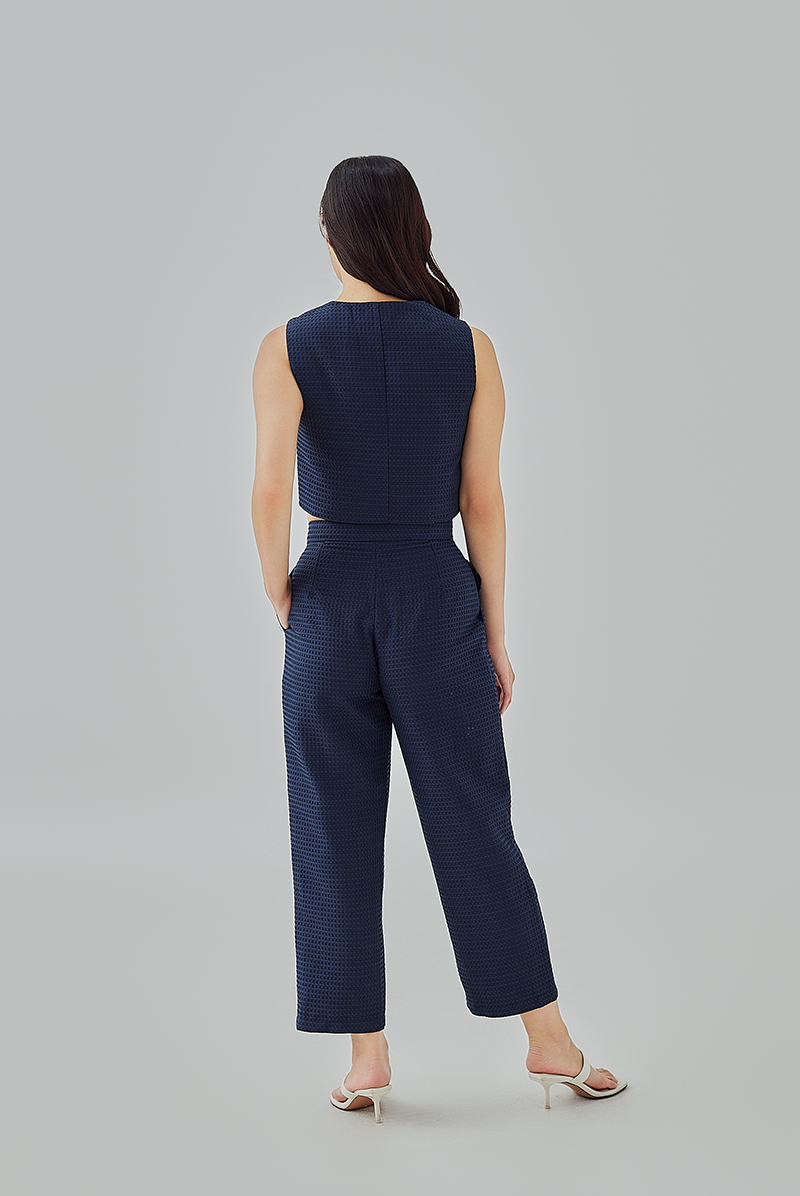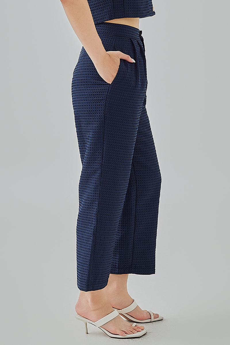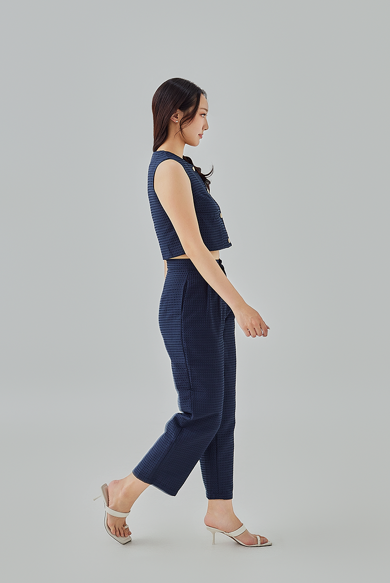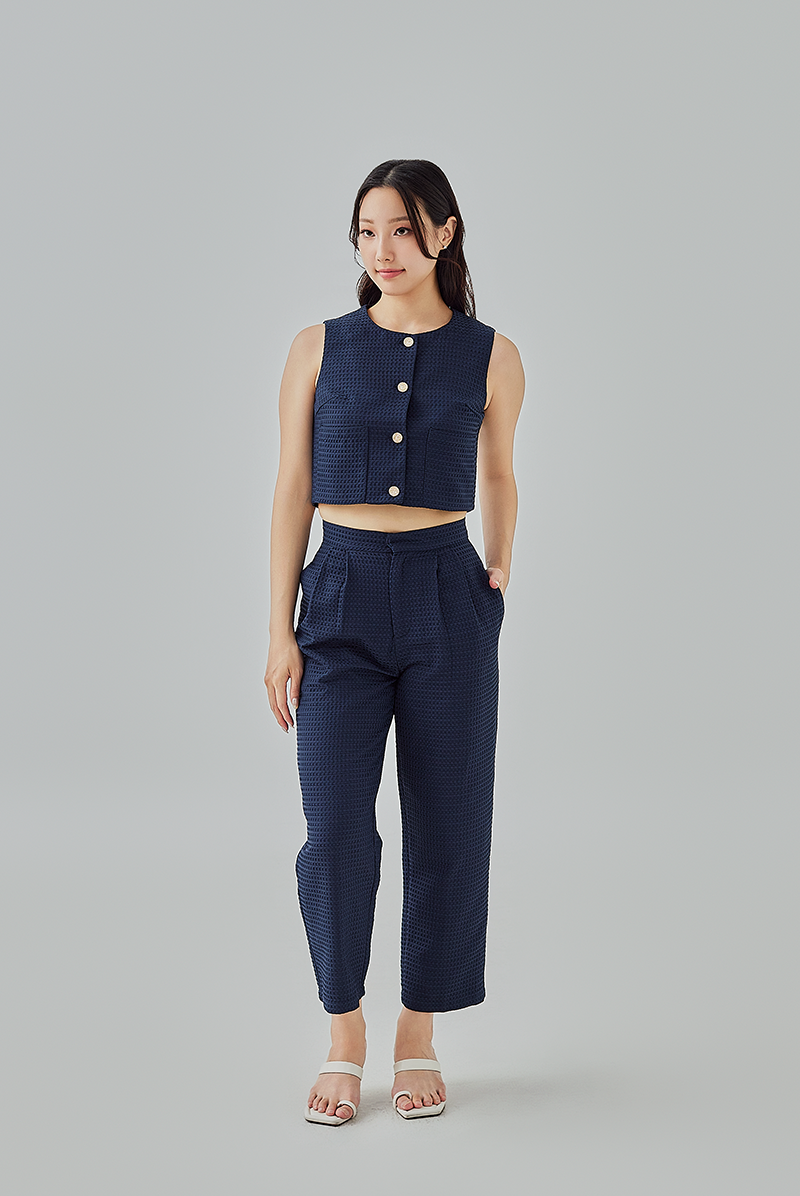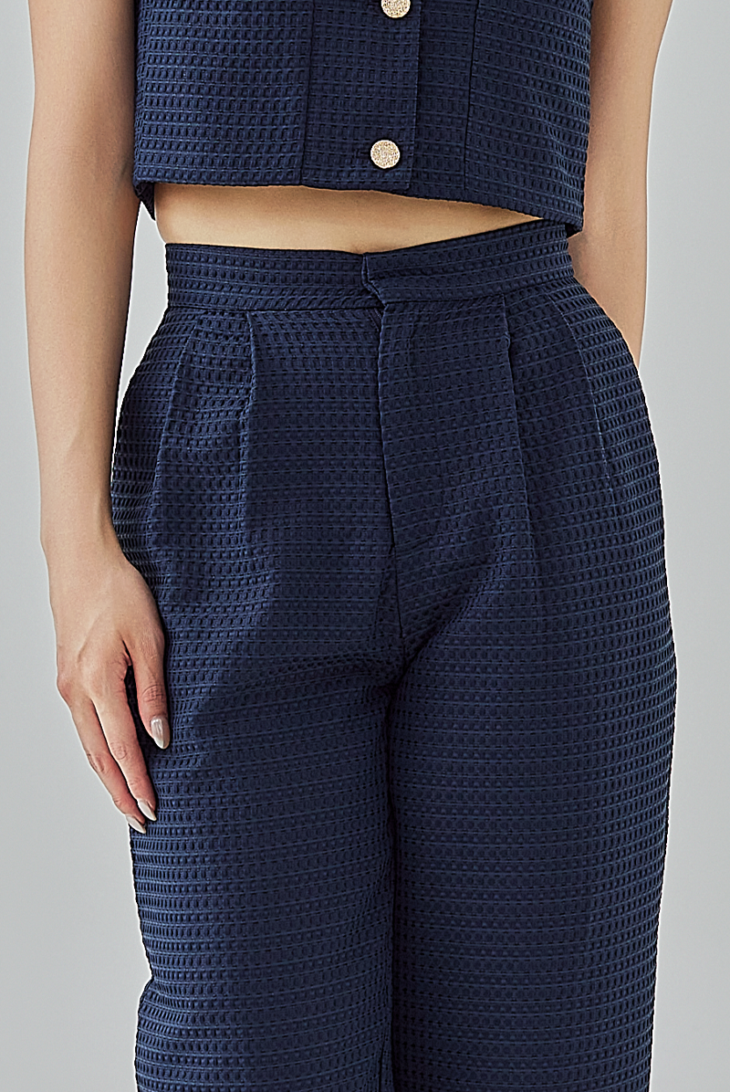 These high-waisted textured pants give a sleek, tailored vibe with a hidden hook, zipper, and pleated front for extra polish. Functional side pockets keep it cool and casual, while the ankle-length cut adds a modern edge. Pair it with our matching piece, Remy Textured Button-Up Top for a chic, effortless look!