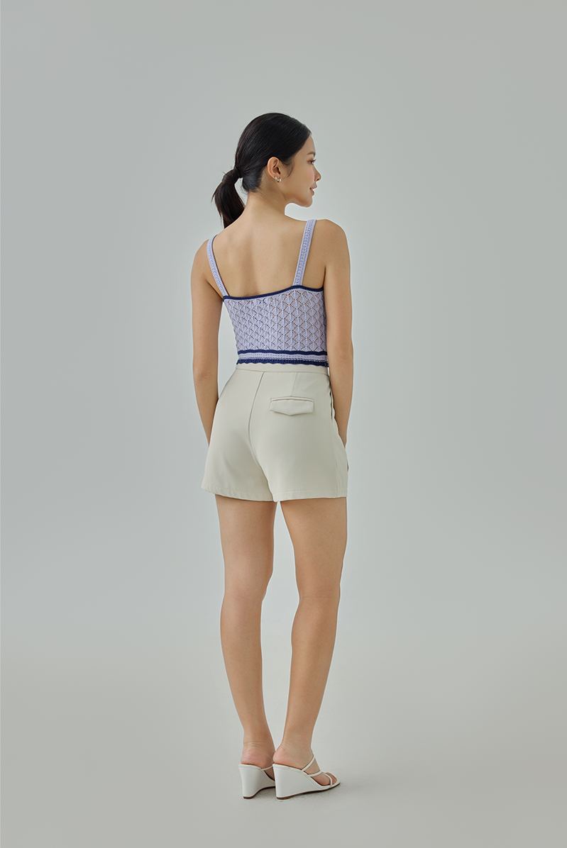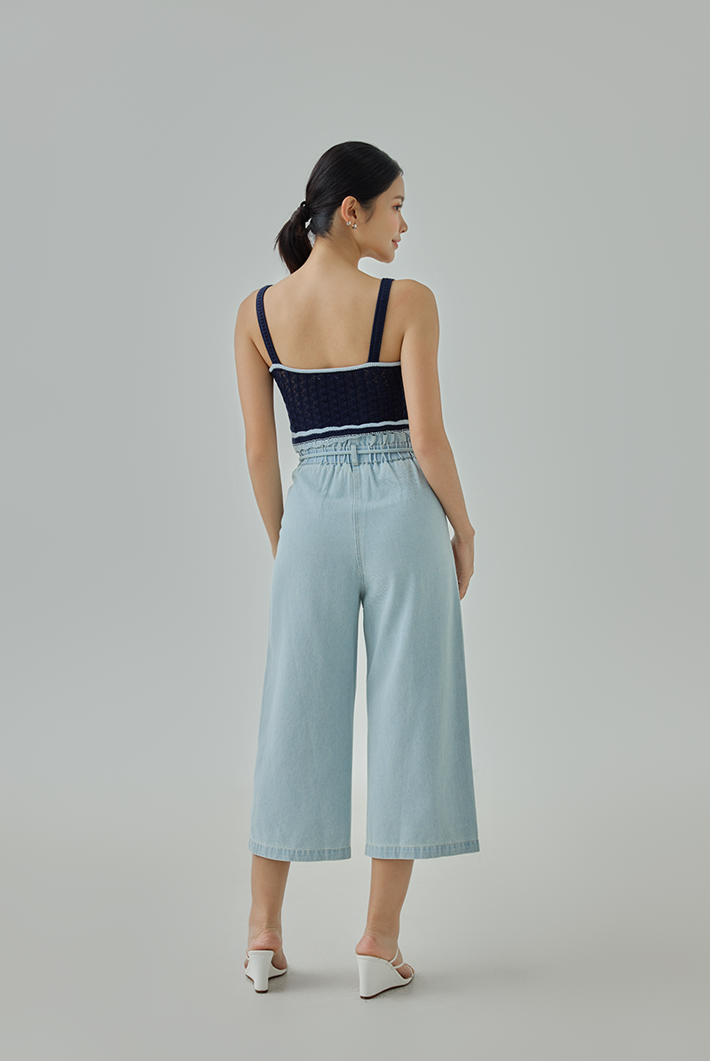 A chic, modern knitted top with playful contrast detailing. Fitted at the bust and cropped at the waist, it’s perfect for layering or wearing solo for a stylish, contemporary look.