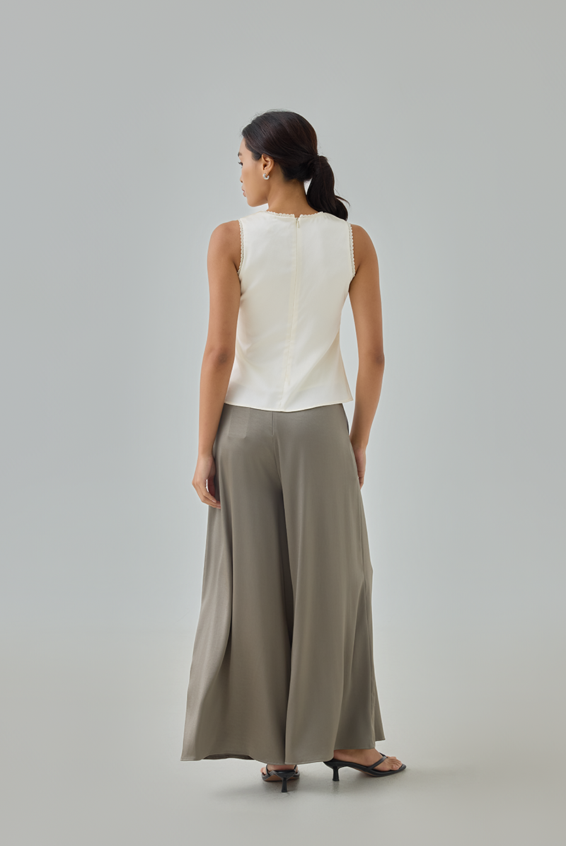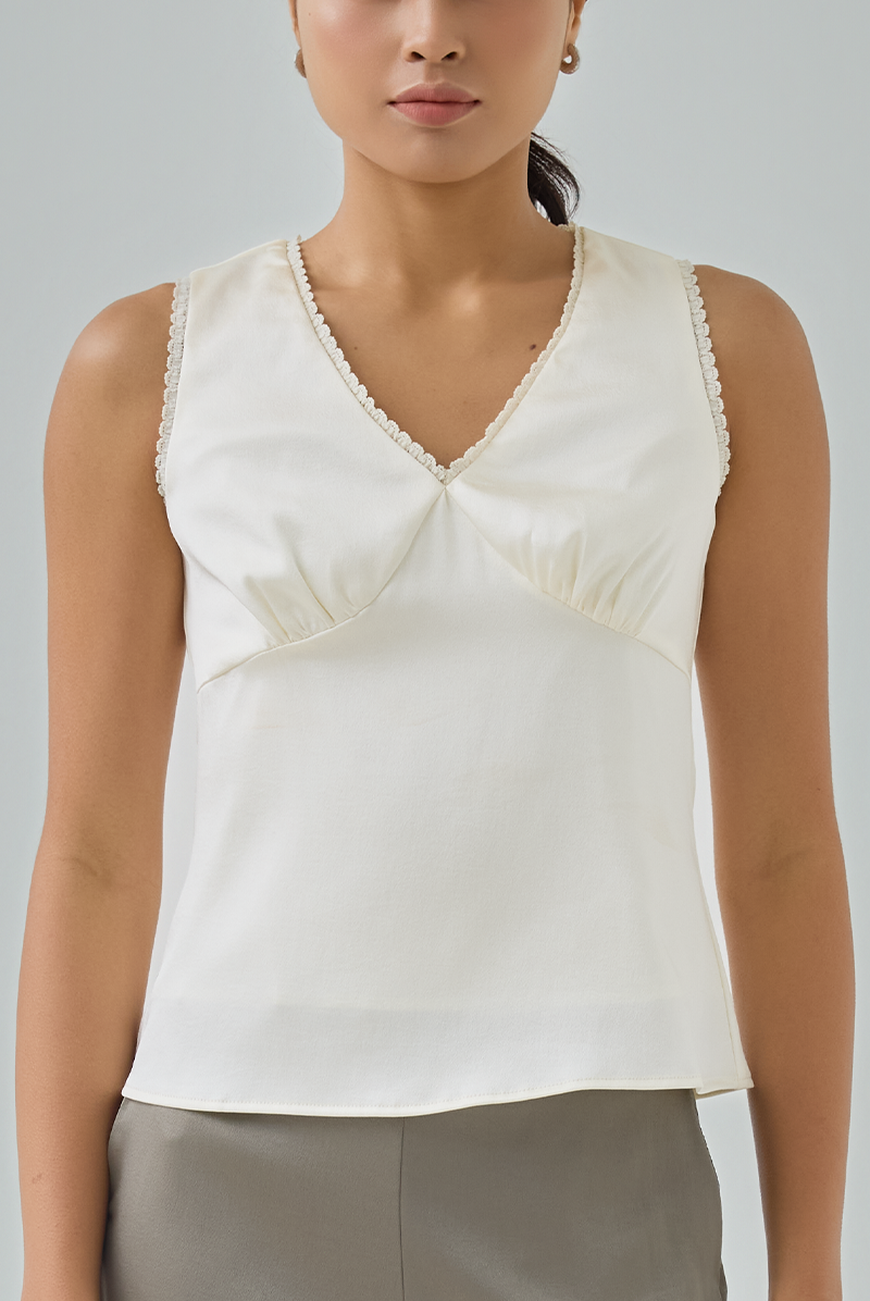 Meet the Zel Satin Top — a delicate, feminine piece that instantly elevates any outfit with its soft sheen and refined lace accents.